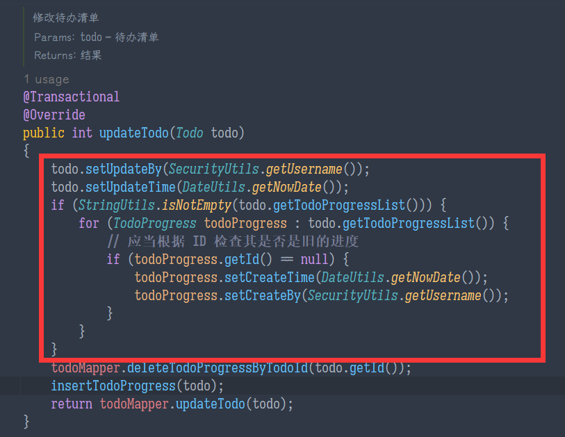 默认只自动维护了 createTime 和 updateTime,需要添加维护 createBy 和 updateBy 的代码,同时进度需要维护 createTime: