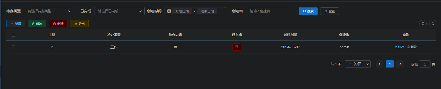 - 能查询是否完成,的待办,能按创建时间区间做查询,列表按截止时间升序排列