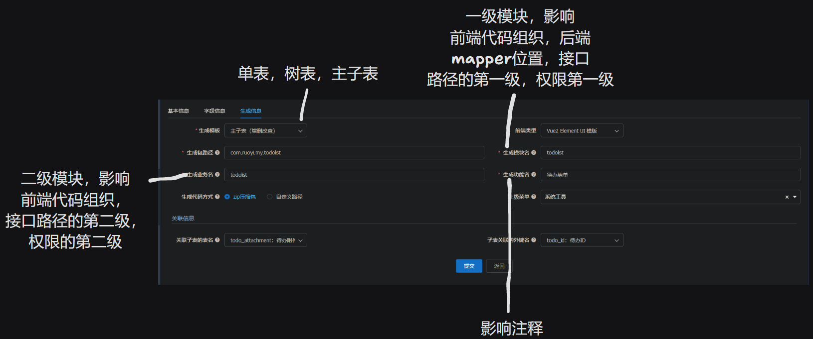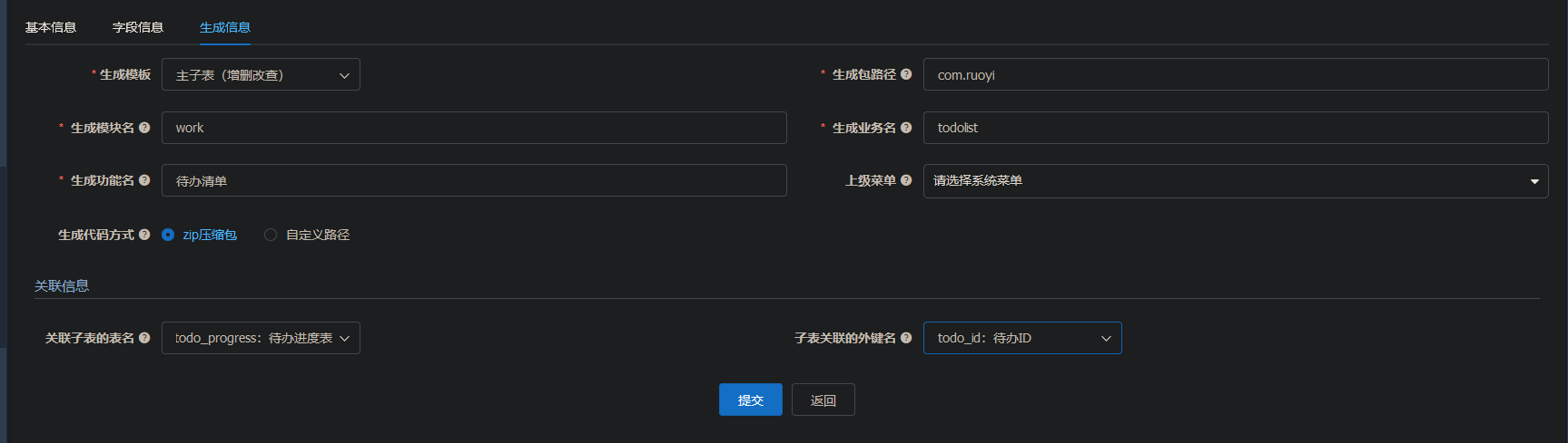 此外,生成主表时,关于子表信息,似乎是只有选中了“列表”才会显示在主表实体的添加、编辑页面中……这是 bug 吗?