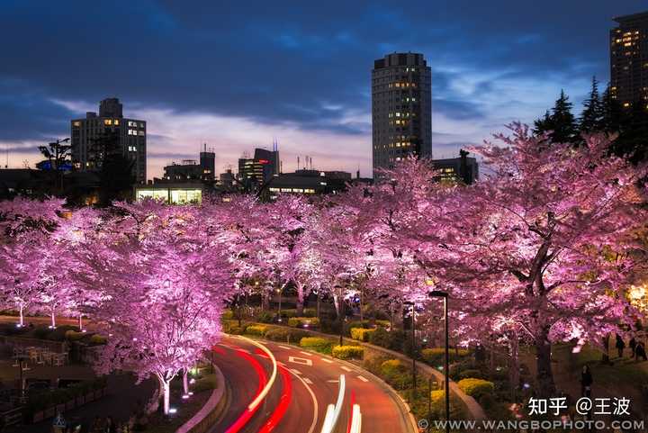 而中焦拍的照片,重复的元素近大远小透视感接近人眼的感觉,下面这张东京六本木的夜樱,就是52mm焦距拍摄的,很接近人眼看到的透视感。