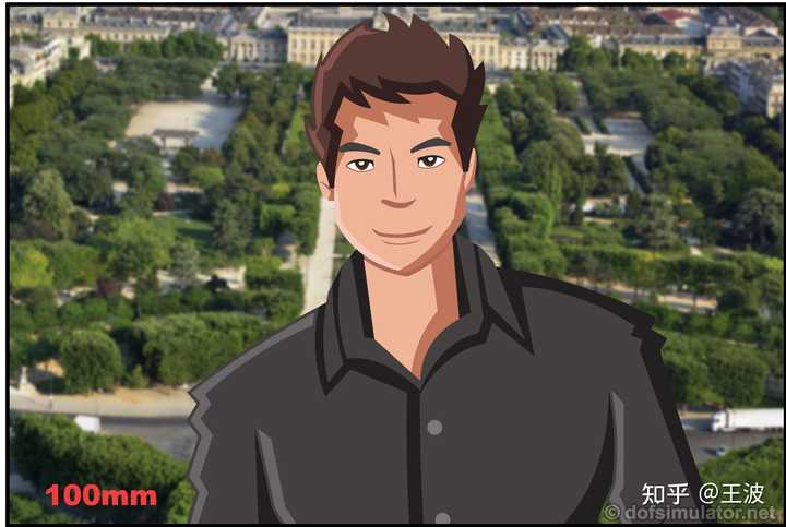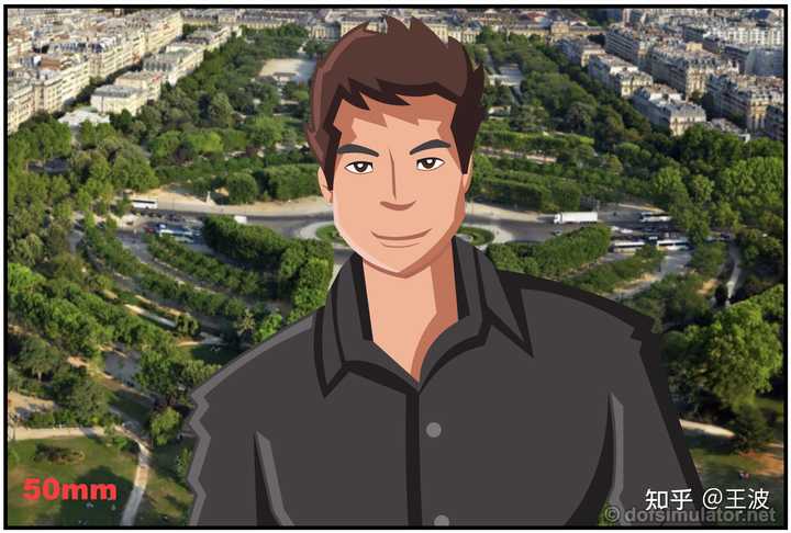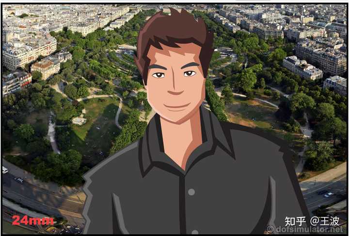 可以看到24的焦距,背后是一个巴黎的市景图,随着焦距越来越长,背景也会越来越窄,最后只有原背景中很小的一块了。