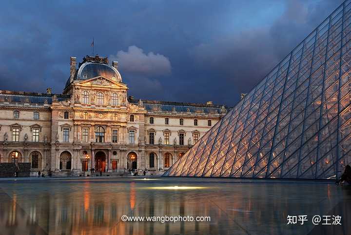 下面这张照片拍摄于卢浮宫外面,可以看到画面中的建筑基本平直,没有很明显的聚拢倾向,但是仔细观察水池里的平行线条,还是可以看到聚拢和近大远小的透视的,很接近人眼观感,所以这张照片推测是使用中焦拍摄。
