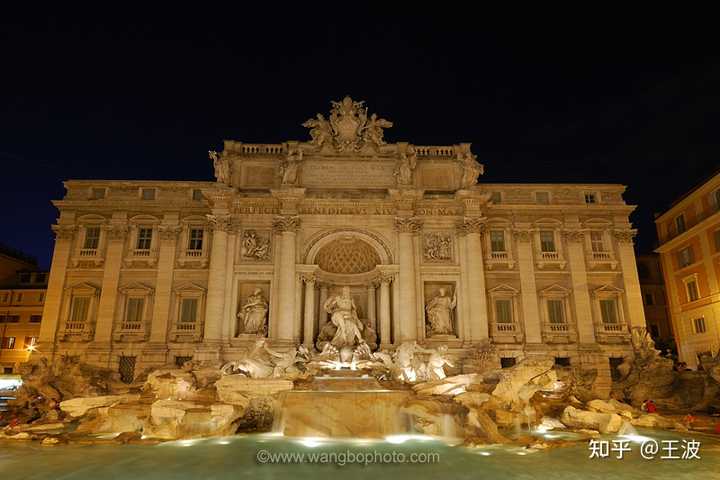 比如下面这张拍摄于罗马的许愿池,可以看到许愿池背后的楼下宽上窄,立柱向上延伸出的线条,并不平行,会在画面外汇聚成点,这就是典型的广角镜头拍建筑,有仰角的效果。