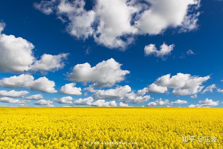 油菜花是重复的对象。从画面可见,近处的油菜花是要比远处明显大的,所以猜测这是广角拍摄的。