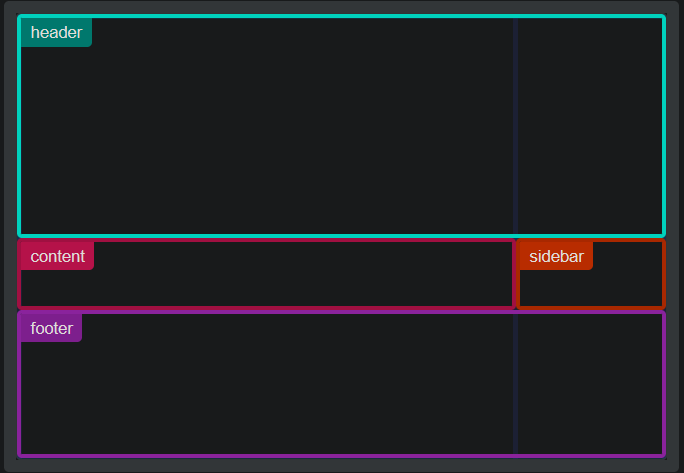 区域也可以命名,命名方式是使用grid-template-areas,对一个 3 行 2 列的 grid,它的语法类似 grid-template-areas: "header header" "content sidebar" "footer footer",注意到每一行是一个字符串,字符串中使用空格分割每一列。