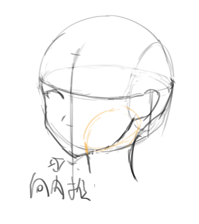 注意黄色线条标识的脖子和头颅的连接处(全凭感觉画的!),靠下颌的脖子部分实际上有一部分是不可见的。