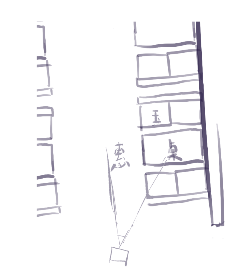 - 关于透视,关于草图的起法,我是先定俯视图再定内容的,这可能不是个好的选择,按理说应当是定好构图后(这一步是二维的)直接起草图。以及起了草图后对镜头,人物的安排几经修改(搞得实际上我之前想表达的很多东西都没能表达出来)……而我觉得我现在连问题出在哪里都没有好好描述清楚。好在Krenz的透视课程可以说就是专门是关于透视草图的起法的