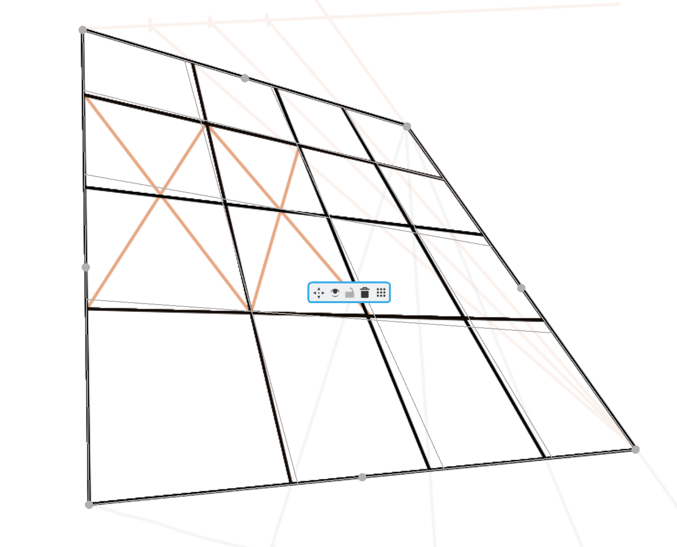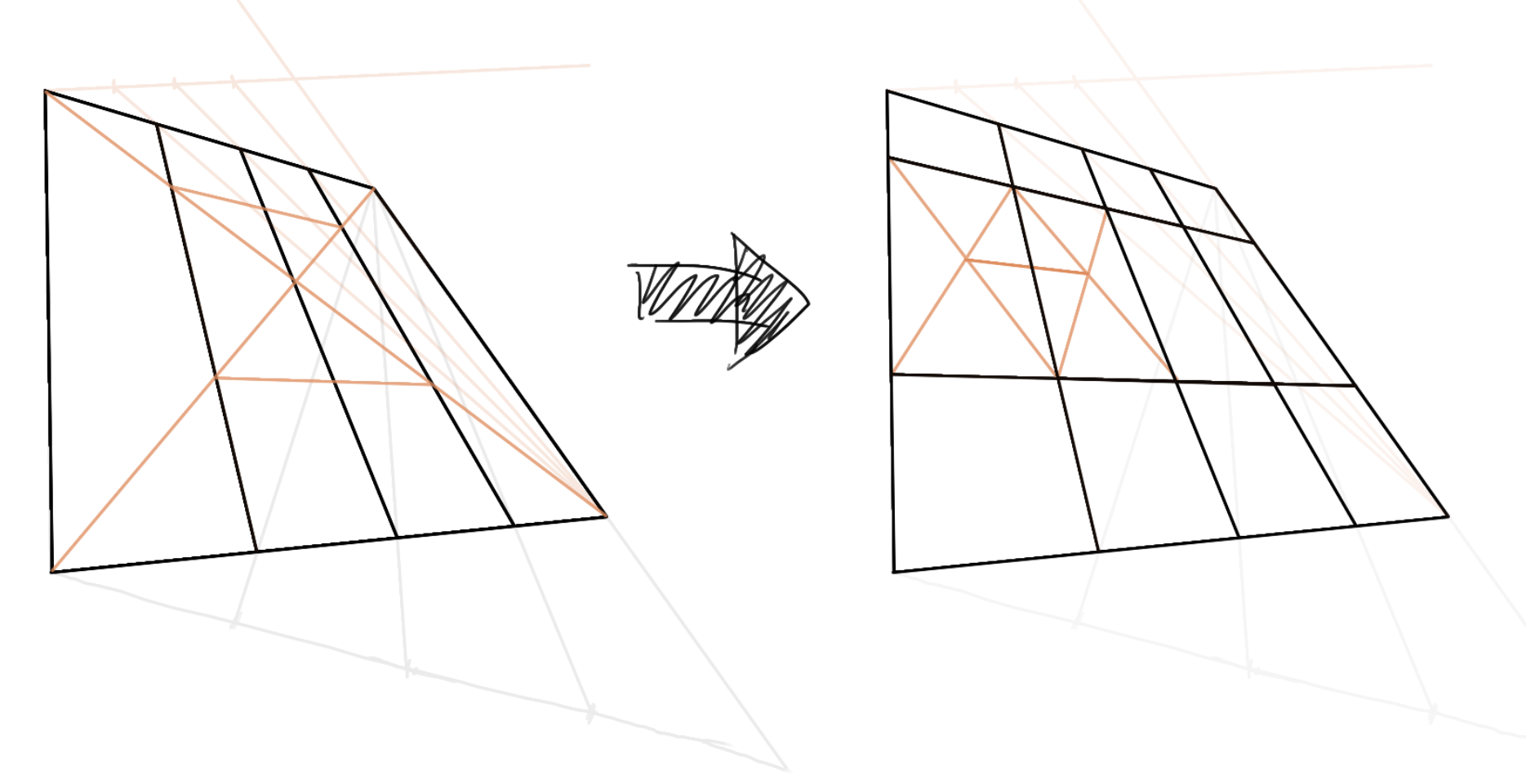 在一个透视中的矩形上做宫格是常见需求,通常我们做宫格来帮助我们进行旋转(如Krenz的十六宫格旋转系统,当然它要求这个矩形是正方形,这是另外的课题),以及手动的贴图法——将一个二维形状贴到三维的表面上,或者做对称……