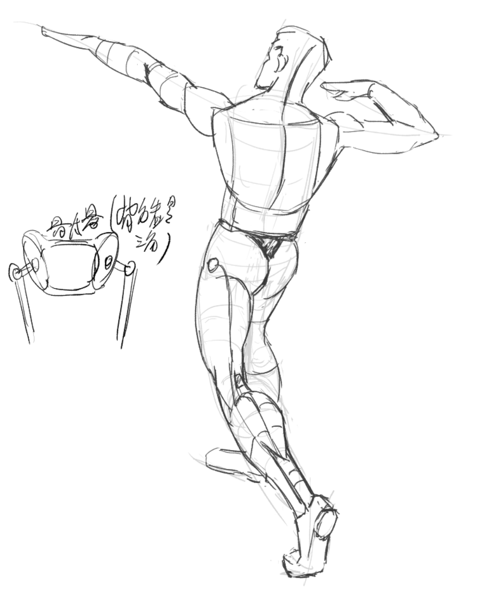 第一步画的就是各个身体部位的趋势(流势是各种趋势的有机的组合)。