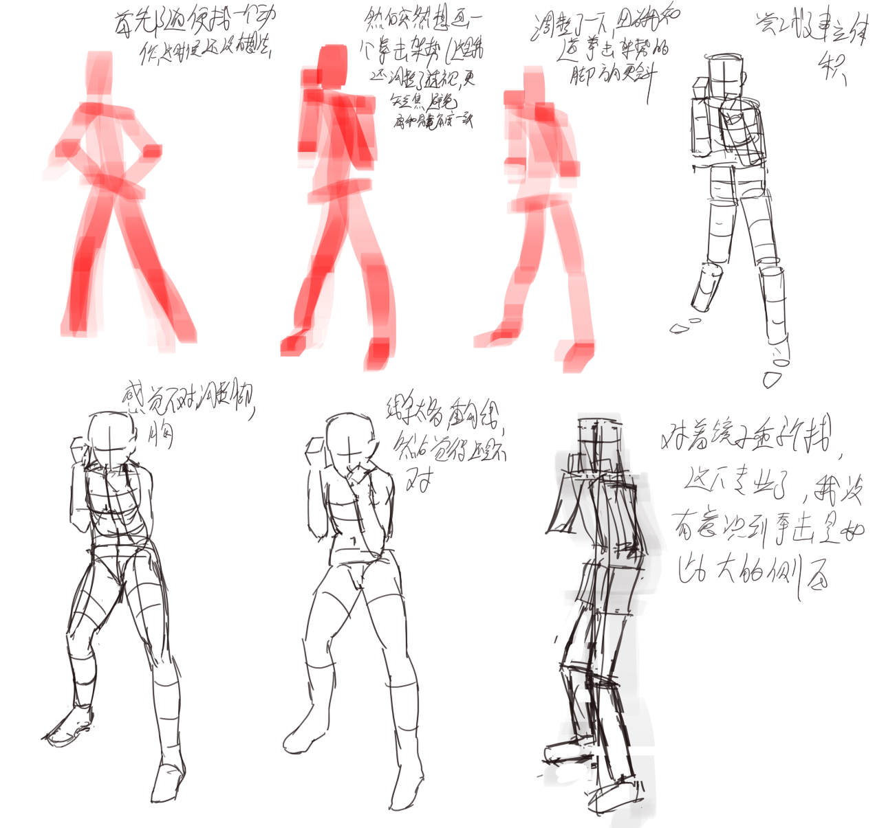 其实我觉得在熟悉了相应形体后,(在定出关键点后)我也能够随着感觉推着画,虽然肯定是不能看的,但这会很自由。
